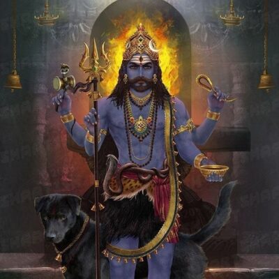 Bhairava, a formidable deity in Hindu mythology, embodies the fierce aspect of Lord Shiva, revered for his role as a protector and destroyer of negativity. Often depicted with a terrifying countenance adorned with skulls and weapons, Bhairava’s presence symbolizes the triumph of righteousness and the eradication of ignorance. He is worshipped for his ability to dispel obstacles, uphold cosmic order, and guide spiritual seekers towards liberation. Bhairava’s fierce demeanor signifies the transformative power needed to transcend worldly attachments and attain spiritual enlightenment, making him a revered figure in Hinduism, particularly in tantric traditions where his worship involves intense rituals and meditation practices aimed at harnessing his potent energies for inner transformation and divine grace.