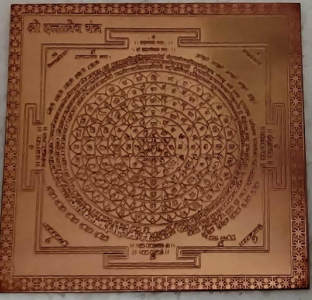 Symbolically, the yantra represents unity of the divine forces, spiritual wisdom, and protection from negative energies. The geometric patterns within the yantra act as conduits for cosmic energies to flow, aligning the devotee with higher consciousness and divine grace.